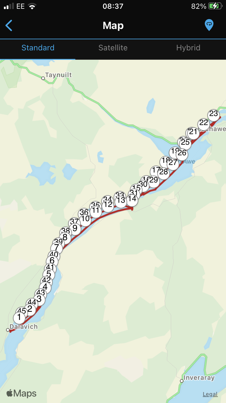 Thoughts of ‘what on earth have we signed up to?’ didn’t really kick in until we turned at Kilchurn Castle, when the lovely tailwind we had enjoyed on the way down, became a menacing headwind with waves on the way back. Our sub-10-minute kilometres quickly turned into 18 minutes, to 25 minutes, to 30 minutes as we struggled our way back to Checkpoint 3 at Loch Awe Boats.
