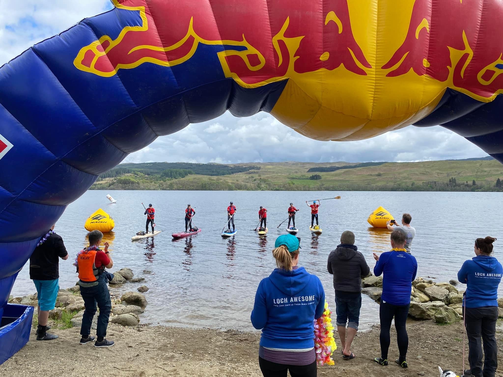 Never have I been so happy to see a Red Bull arch – it’s just round the next headland, honest! We returned to Dalavich, crossed the finish line as a team, to tunes and cheers from those who had already finished and the onshore supporters. The final challenge of the day being to carry your board off the water – fortunately I had a little help.